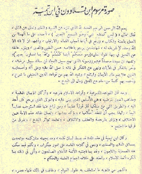 (İbni Teymiye’nin sözlerinin kıymeti yoktur. O, dalalettedir ve Müslümanları dalalete sürüklemektedir. Müslümanların icmasından ayrılmış, bid’at yolunu tutmuştur. İslam âlimleri, onun dalalette [sapık] olduğunu, sözbirliği ile bildirdi. Kutbüd-Berdiri, Şerhi Muhtasarda, bunu uzun yazmaktadır.) [Tahir Muhammed Süleyman - Zahiretül-fıkhil-kübra]