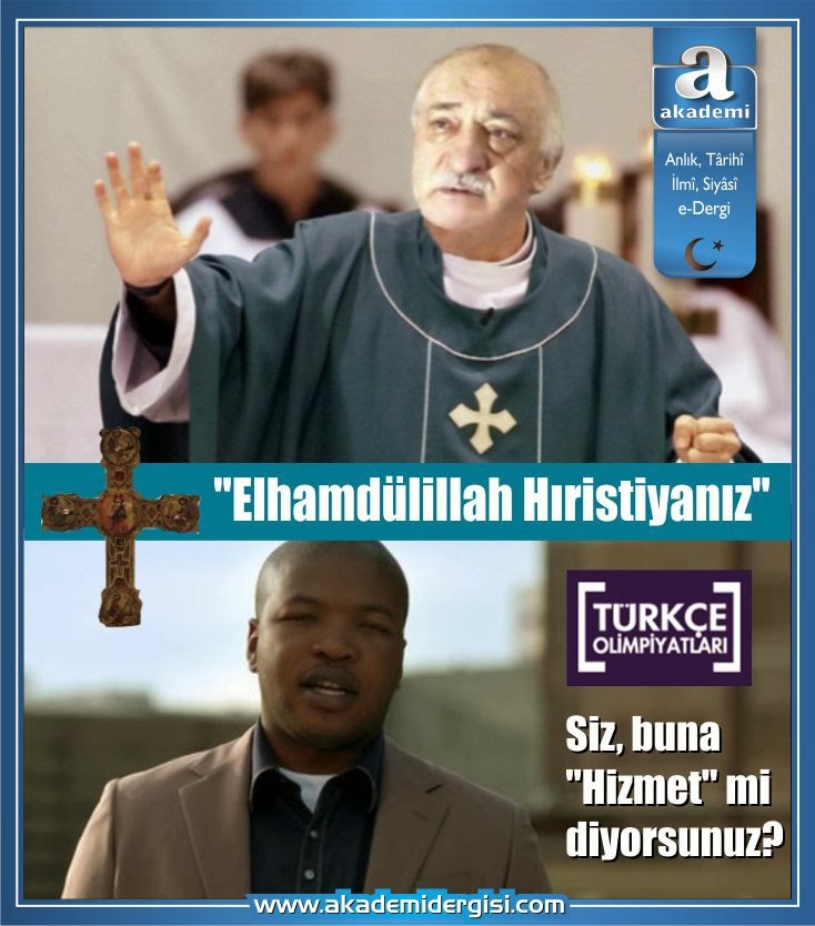 KARDEŞİM SİZİ ALDATMIŞLAR. SİZİ DÜŞMANLA KANDOIRMIŞLAR. FETHULLAH GÜLEN HOCAEFENDİ KADROLAŞIYOR DİYORSUNUZ AMA OSMANLI'DAN SONRA İNGİLİZ'İ, YAHUDİ'Sİ, MASONU ÇÖREKLENMİŞ. TÜRK EVLADINDAN İSTEDİĞİNİ YÜKSELTMİŞ. EN YÜKSEK MAKAMLARI İŞGAL ETMİŞ. GHÜNLERCE TÜRKİYUE'DE OSMANLI ARŞİVLERİ YAKILMIŞ. ŞİMDİ BİR BİLİNÇLİ TÜRK KALKMIŞ O HAİN BİTLERİN USULUNCE YERLERİNE GEÇİN DİYOR. TEK DERDİ ALLAH RIZASI KİMSE İNANMASA DA... nalealeyk@gmail.com
