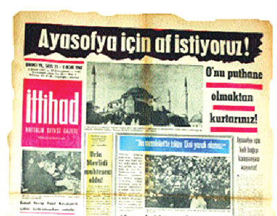 “Eskilerin lüzumsuz keyfî kanunları ve su-i istimalleri neticesiyle, belki de tahrikleriyle zuhur eden Ticanî meselesini ve ağır cezalarını dindar Demokratlara yüklememek ve âlem-i İslâm nazarında Demokratları düşürmemenin çare-i yegânesi kendimce böyle düşünüyorum: Nasıl ezan-ı Muhammediyenin (asm) neşriyle Demokratlar on derece kuvvet bulduğu gibi, öyle de, Ayasofya’yı da beş yüz sene devam eden vaziyet-i kudsiyesine çevirmektir.